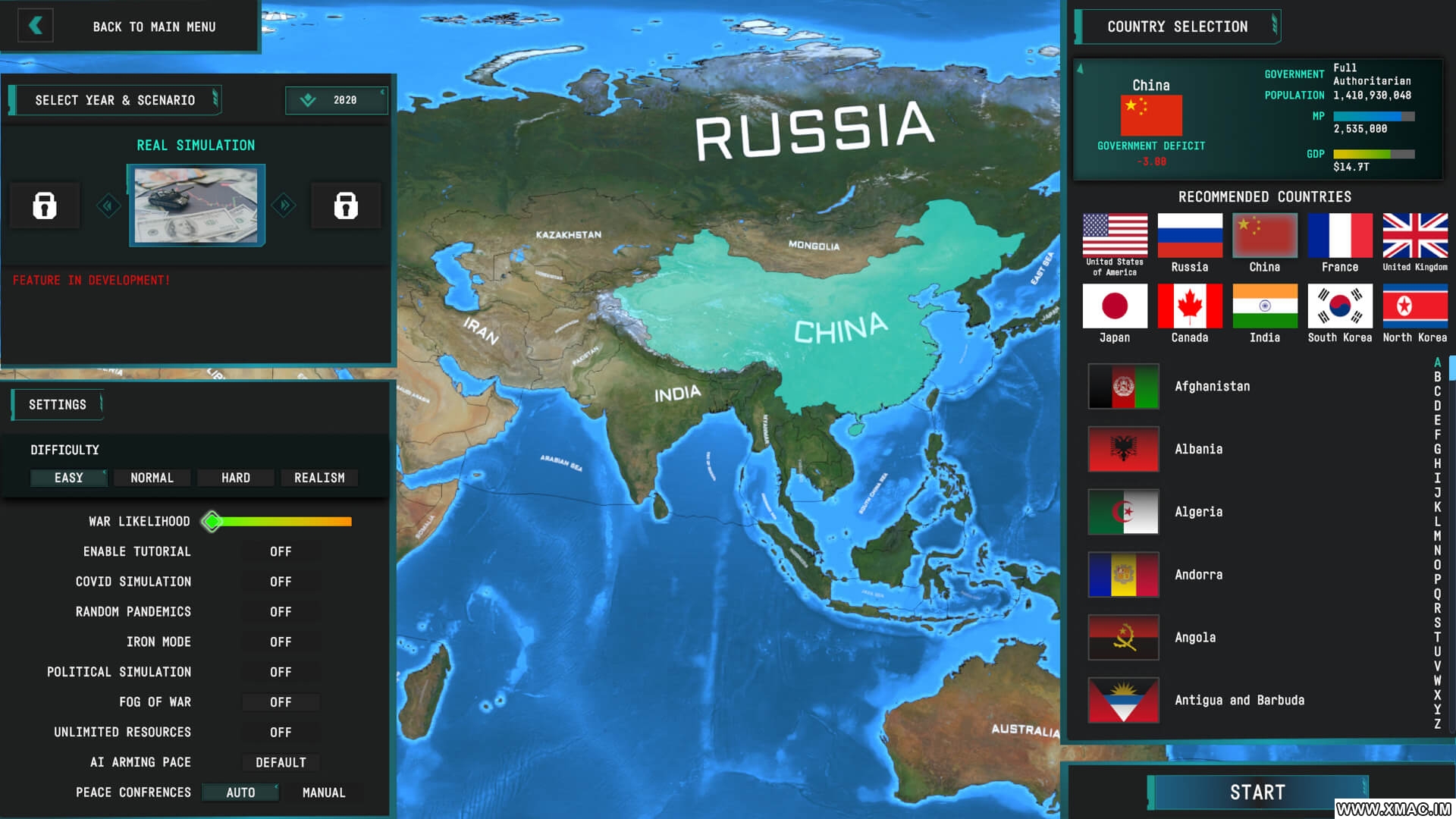 操控世界上任何一个国家。让他们的政治、经济和军事把握在你手中。刻画你自己版其他第三次世界大战,一场全球大盛行,或者创立一个自定义场景。