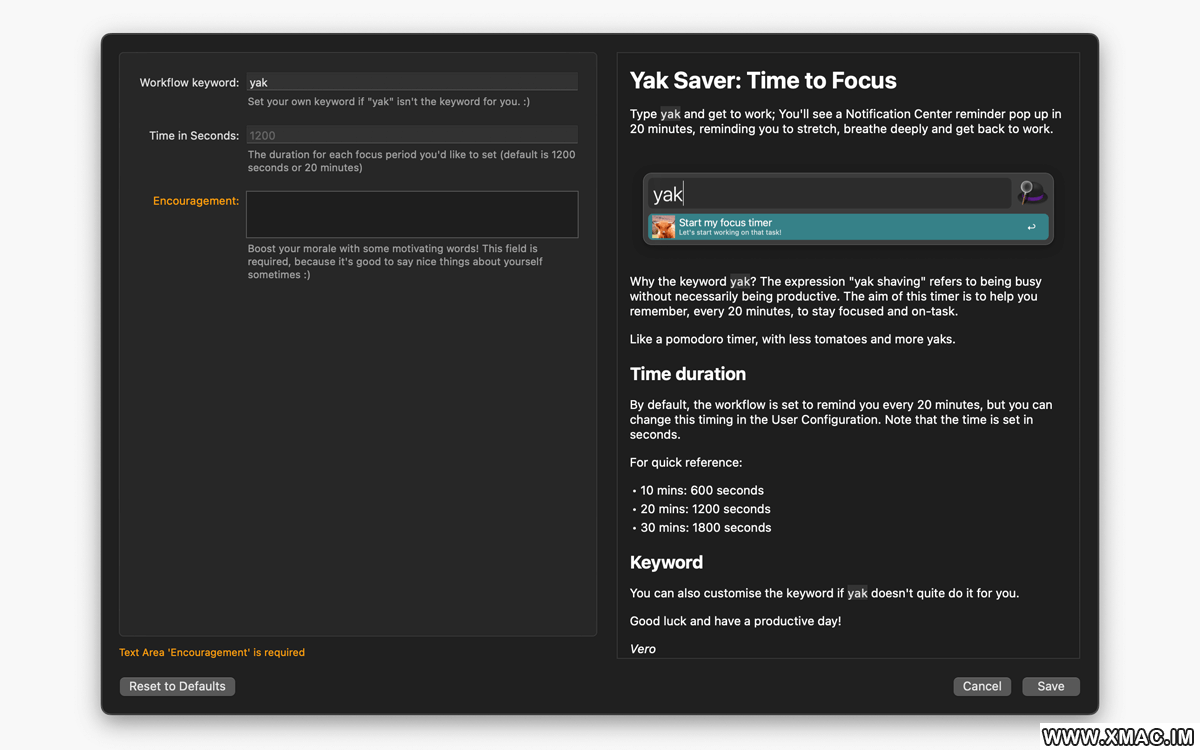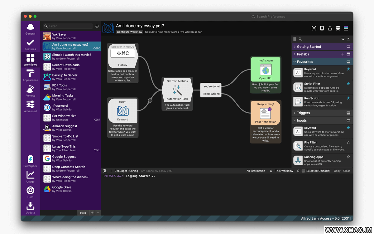 Alfred的自动化任务对象添加了不断增加的可配置操作集合,您可以将其作为构建块添加到工作流中,而无需考虑其背后的代码;从调整图像大小和移动文件到获取当前Safari选项卡或切换到暗模式。