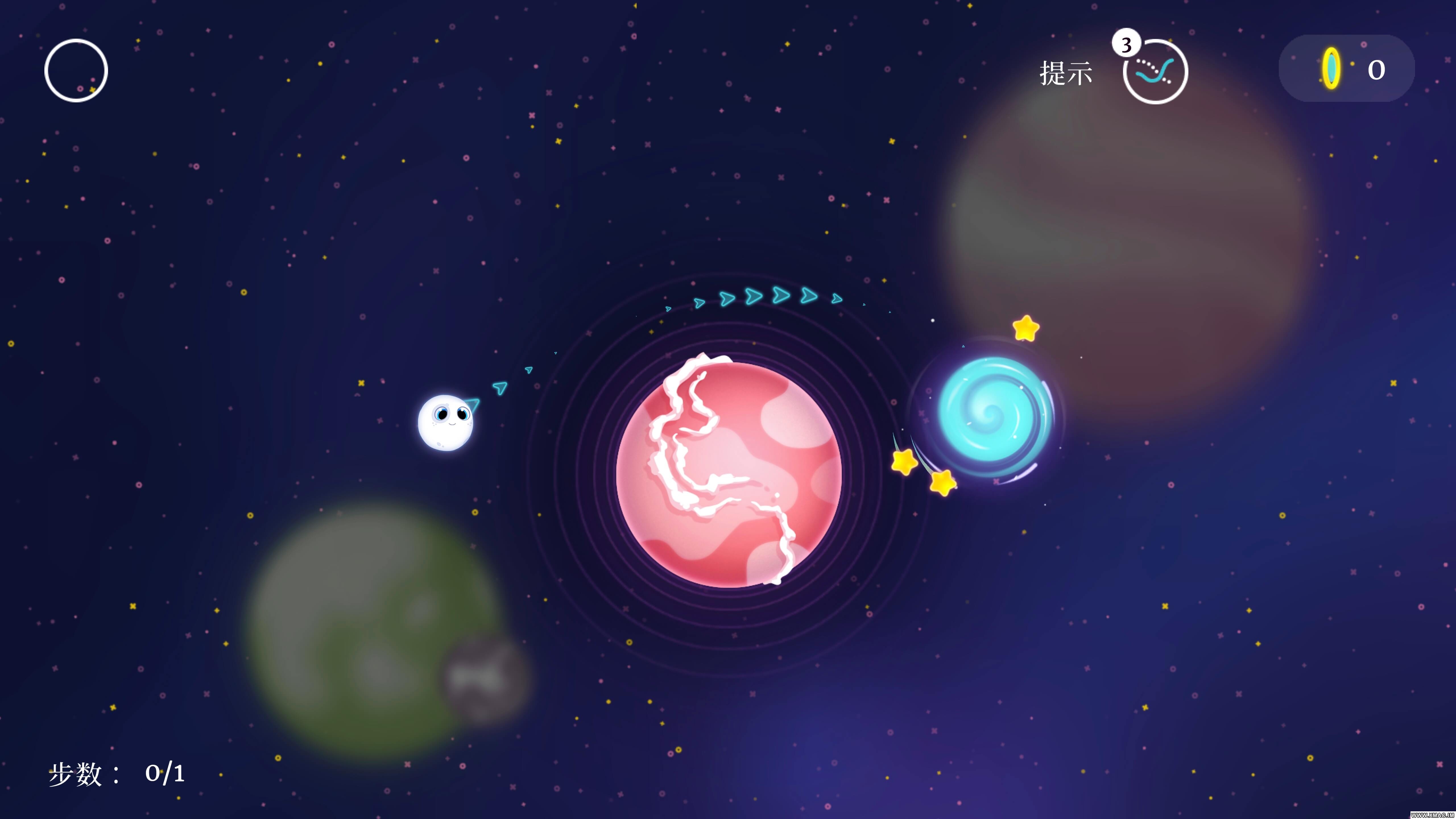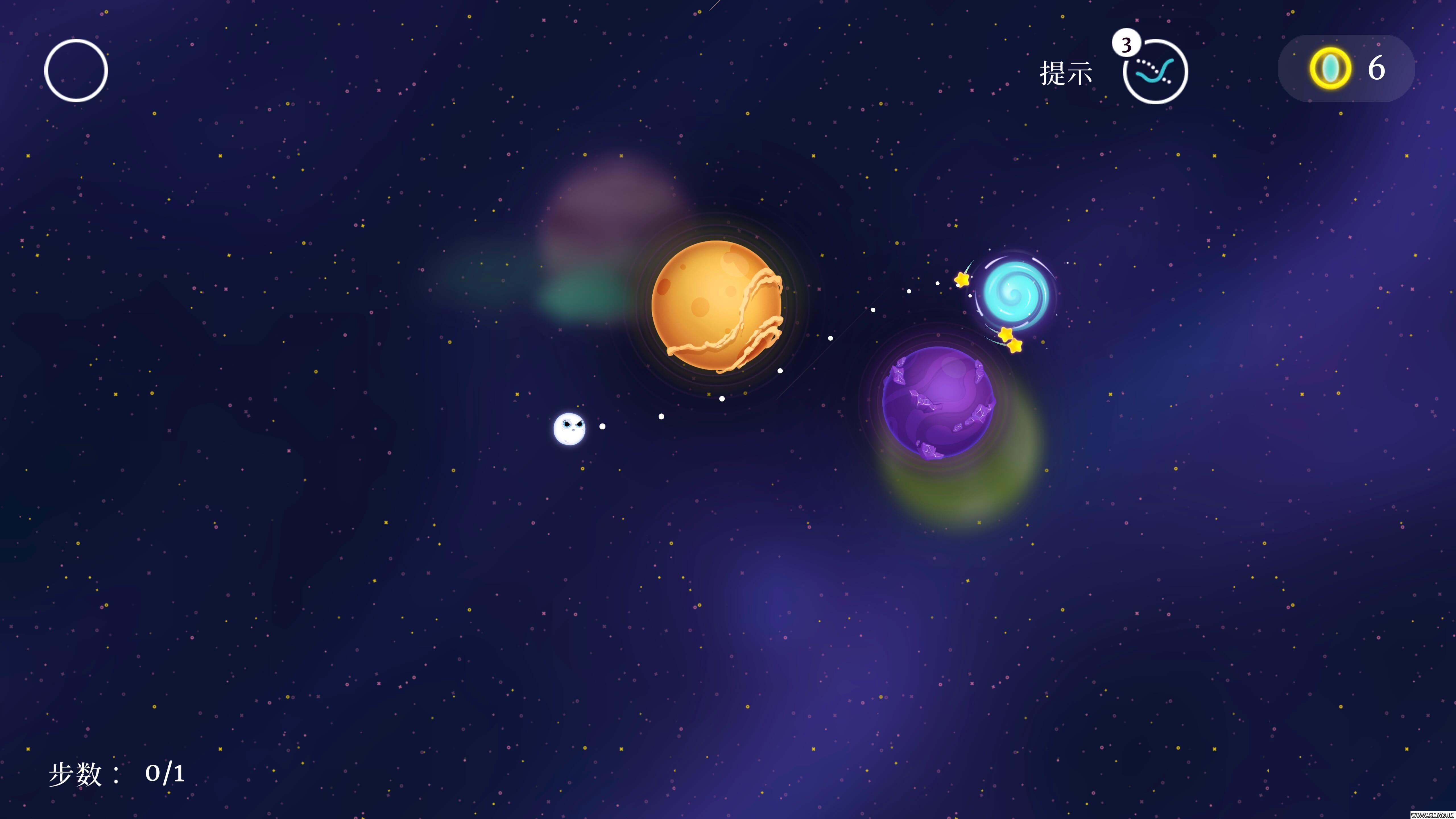 玩家需借助各个星体的引力,精准弹射主角穆恩,使其绕行、穿越或停靠到下一个星球,逐步接近“地球家园”。