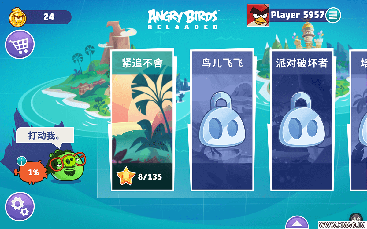 Angry Birds Reloaded《愤怒的小鸟重制版》for Mac 中文版是一款好玩的休闲益智游戏,Angry Birds Reloaded 加入 Red、Chuck、Bomb、Silver 和其他团伙的经典弹弓动作,重制版适合所有年龄段的朋友们,无论是小孩还是成年人。不仅具有原始游戏中熟悉的基于物理的游戏玩法,还增强了视觉效果,加入了新的角色和挑战。游戏支持中文语言,有喜欢这款经典的游戏的可以下载体验一下。享受原始《愤怒的小鸟》游戏中熟悉且令人满意的弹弓动作,游戏中有数百个关卡的砸猪、打鹰和破坏性乐趣。