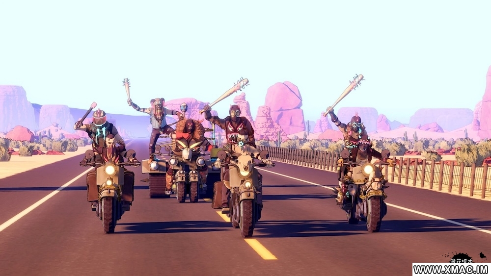 你将在途中穿越虚构历史的美国,在具有标志性的地点停留,接受意想不到的任务,结识各种各样的人物,招募新队员,躲避(或对抗)追杀你的人。你会在高速公路上欣赏到优美的风景,这些风景呈现出了以彩色漫画小说为灵感的艺术风格,使得惊艳的2D插图展现出了3D效果。