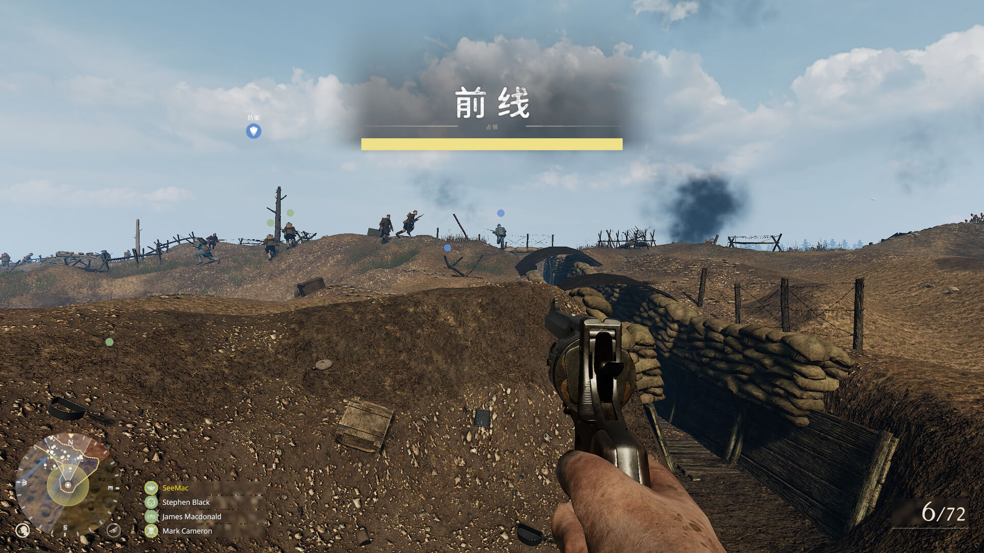 前线攻防战游戏模式的独特性在于其战术的复杂性。真实的堑壕是难以在其中战斗的,需要运用巧妙的战术进行攻防。协约国和同盟国都竭尽全力要控制前线。在其中一场战役中,您会发现自己发起进攻,冲进敌方的堑壕以占领阵地,在另一场战役中,您可能需要在刚刚占领的阵地上抵御敌方凶猛的反攻。