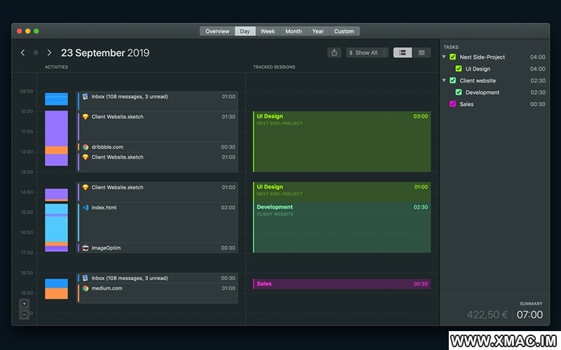 对于设计师而言,当您在自己喜欢的布局应用程序中进行设计,打开项目文件,搜索灵感或与客户开会时,Timemator 会知道。对于开发人员:当您在自己喜欢的IDE或文本编辑器中进行编码,打开项目文件,在Stackoverflow上搜索引用或参加Scrum会议时,Timemator 就会知道。对于任何专业人士:在我们的日常工作流程中,Timemator 是伟大的公民。配置完成后,它将在后台跟踪您的工作时间。您将始终获得每天,每周或每个月的跟踪小时数和已获收入的概览。