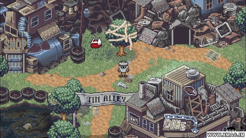 这是一款 SNES 风格的 JRPG 游戏,设定在一个由两名全职清洁工创造的幻想垃圾世界。