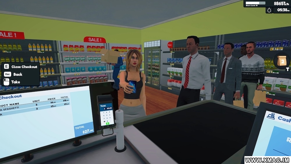 经营你自己的超市!补充货架,定价,收款,雇佣员工,扩大店面,处理商店盗窃,并设计布局。从线上或本地市场采购商品,亲自为客户送货上门。