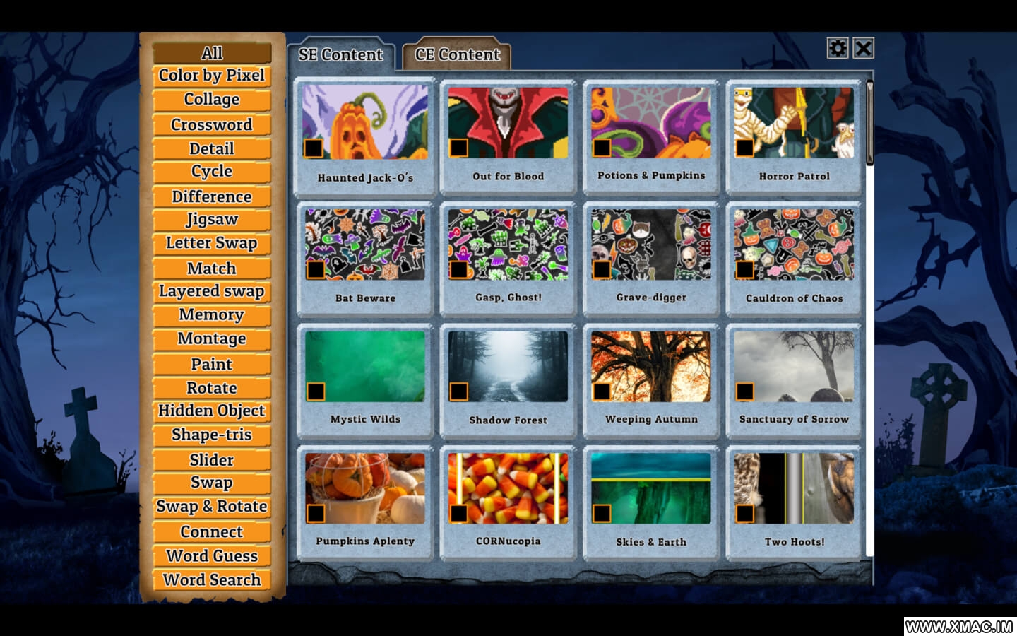 在超级恐怖的万圣节子游戏壮观中,您可以从 30 种不同的具有恐怖扭曲的子游戏中进行选择!解决充满怪异线索的挑战性填字游戏,拼凑出令人着迷的闹鬼拼图,让你的猜词技巧接受幽灵般的考验,通过令人毛骨悚然的挑战挑战你的记忆力,通过怪异的绘画挑战释放你的创造力,等等。万圣节乐趣的精神!