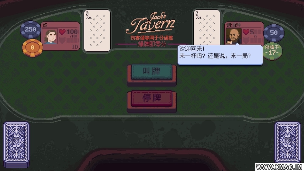 《再来一张》是一款以扑克牌为基础的肉鸽卡牌游戏,你将穿越一家酒馆,与各种各样的人决斗,不断构建自己的牌组。但游戏中不只有扑克牌,还有独特功能的塔罗牌,节日贺卡,藏在袖子里的A……从超过200张卡牌中构建自己的牌组,参与各种随机事件,每一局都有不同的体验。