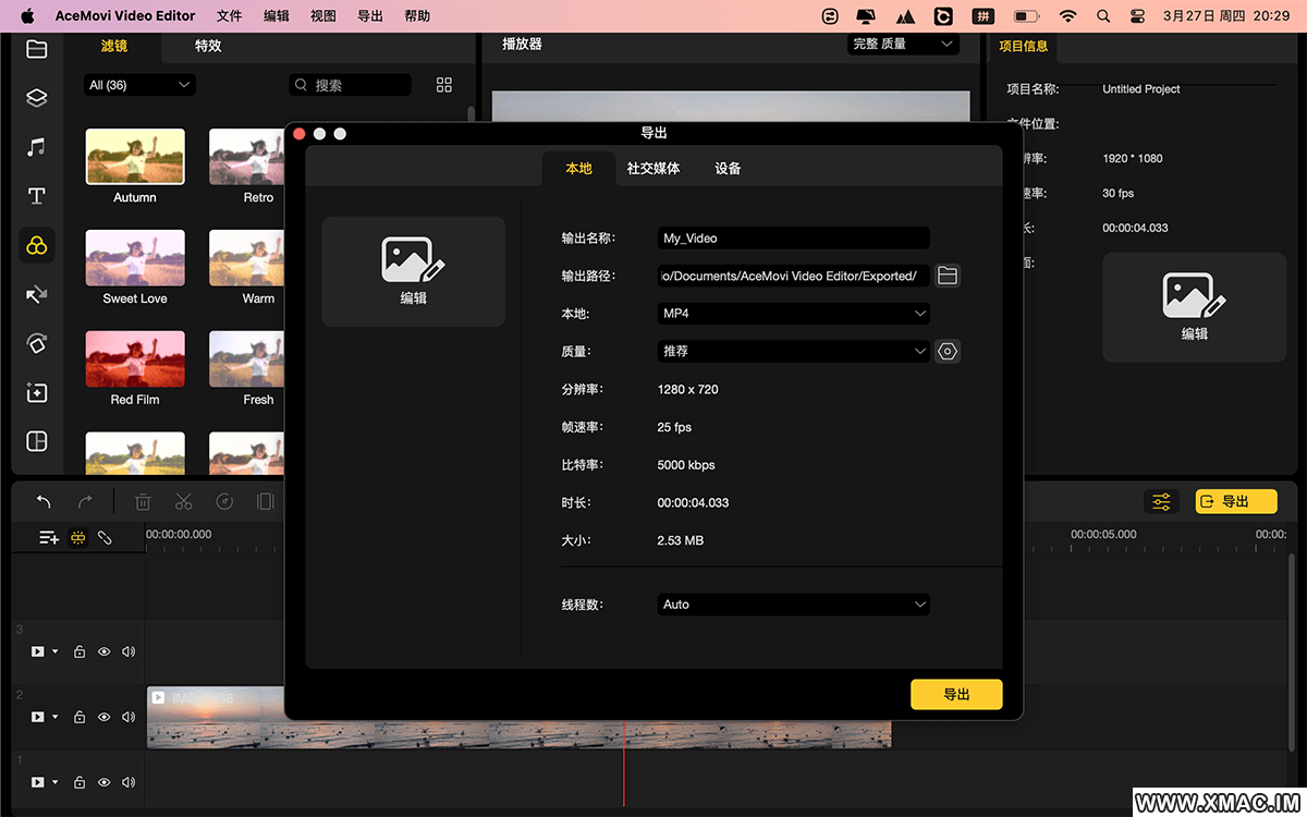 一旦一切都设置好,您现在可以将视频保存在本地计算机上,或在YouTube、Vimeo、Facebook等在线分享您的故事。Acemovi Video Editor支持各种流行的视频格式和设备,包括MP4,M4V,MOV,MKV,MPG,3GP,3GP-2,OGV,iPhone,iPad,Apple TV,Galaxy系列,华为,Xbox,PSP,LG电视等。