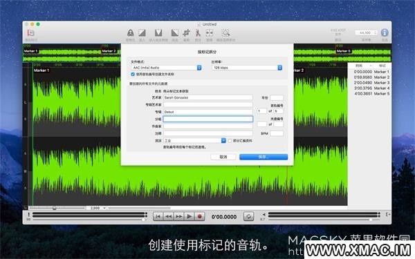 使用 Sound Studio,用户可录制专业的音频播客及其它音频对话。并以同等的高保真度录制和编辑对话、演讲、演示、音乐及其它音频。另外,通过这款高质量的程序能手,还可将文件保存成多种标准文件格式,如 AIFF、WAVE、MPEG-4 AAC、Ogg Vorbis 等。